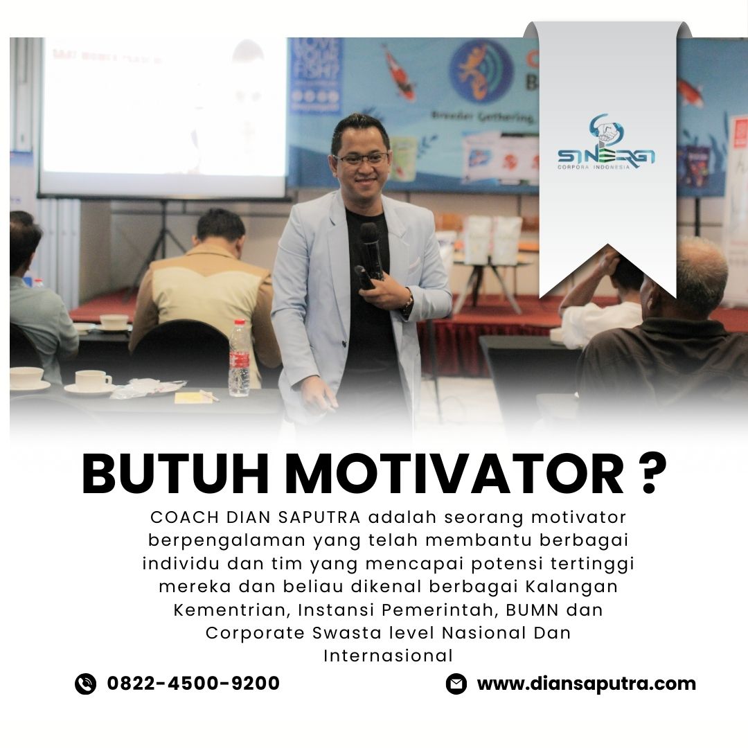 Anda Berada di Info Yang Tepat. Dian Saputra adalah seorang Motivator sekaligus Trainer sinergi corpora Indonesia yang sudah berpengalaman selama 13 Tahun. Coach Dian Saputra selalu memberikan materi yang fun dan Berdampak guna meningkatkan kinerja dan produktivitas SDM di Bisnis Anda. Coach Dian Saputra dikenal oleh Kalangan Corporate Seperti BUMN, Dinas Pemerintah, Kementerian, Hingga Corporate Swasta Lainnya berskala Nasional dan Internasional.