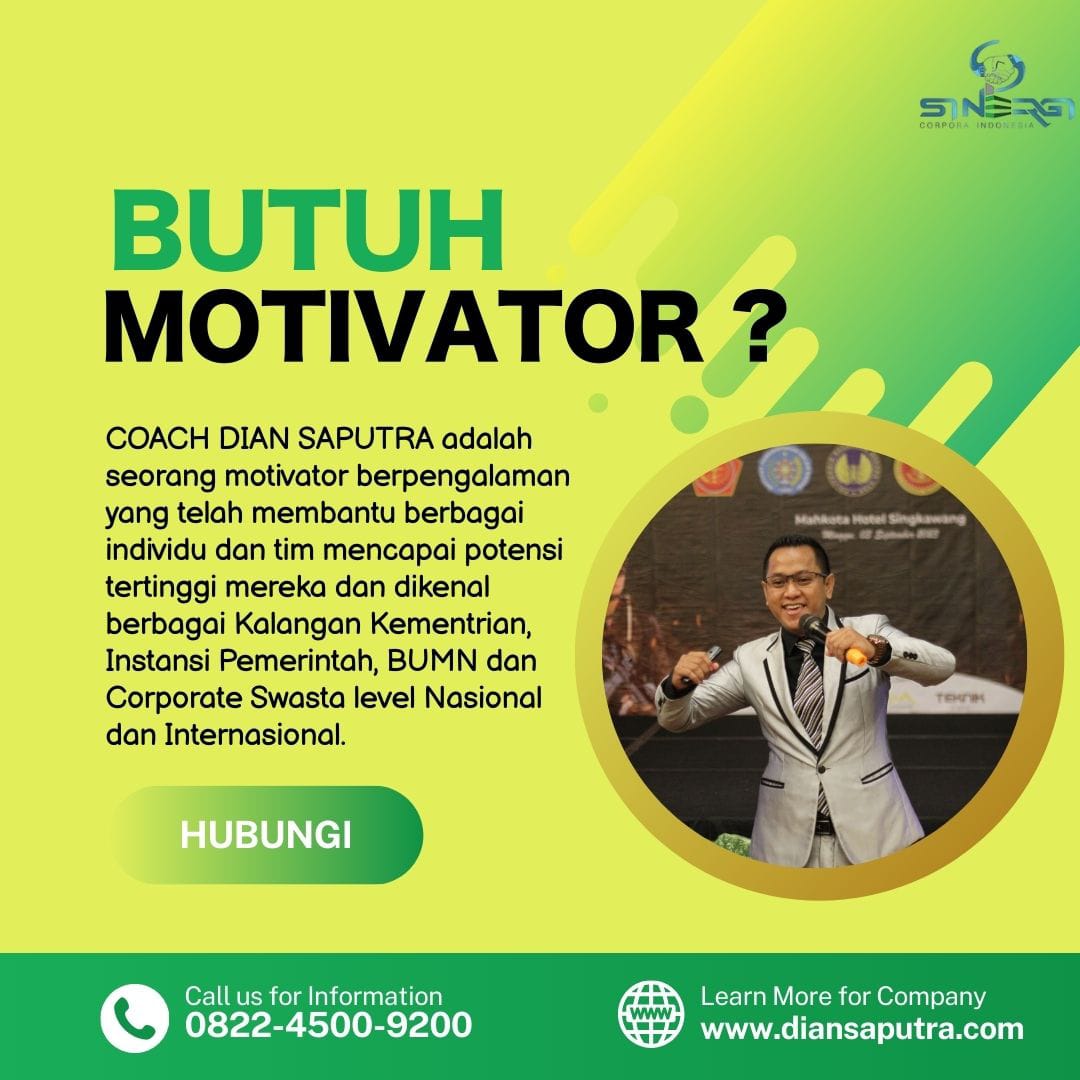 Anda Berada di Info Yang Tepat. Dian Saputra adalah seorang Motivator sekaligus Trainer sinergi corpora Indonesia yang sudah berpengalaman selama 13 Tahun. Coach Dian Saputra selalu memberikan materi yang fun dan Berdampak guna meningkatkan kinerja dan produktivitas SDM di Bisnis Anda. Coach Dian Saputra dikenal oleh Kalangan Corporate Seperti BUMN, Dinas Pemerintah, Kementerian, Hingga Corporate Swasta Lainnya berskala Nasional dan Internasional.