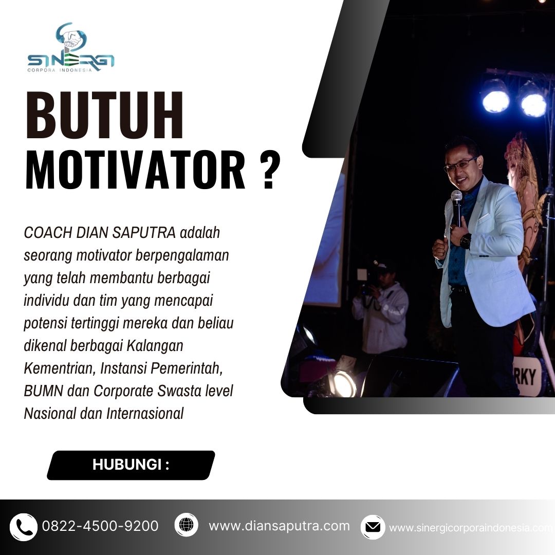 Anda Berada di Info Yang Tepat. Dian Saputra adalah seorang Motivator sekaligus Trainer sinergi corpora Indonesia yang sudah berpengalaman selama 13 Tahun. Coach Dian Saputra selalu memberikan materi yang fun dan Berdampak guna meningkatkan kinerja dan produktivitas SDM di Bisnis Anda. Coach Dian Saputra dikenal oleh Kalangan Corporate Seperti BUMN, Dinas Pemerintah, Kementerian, Hingga Corporate Swasta Lainnya berskala Nasional dan Internasional.
