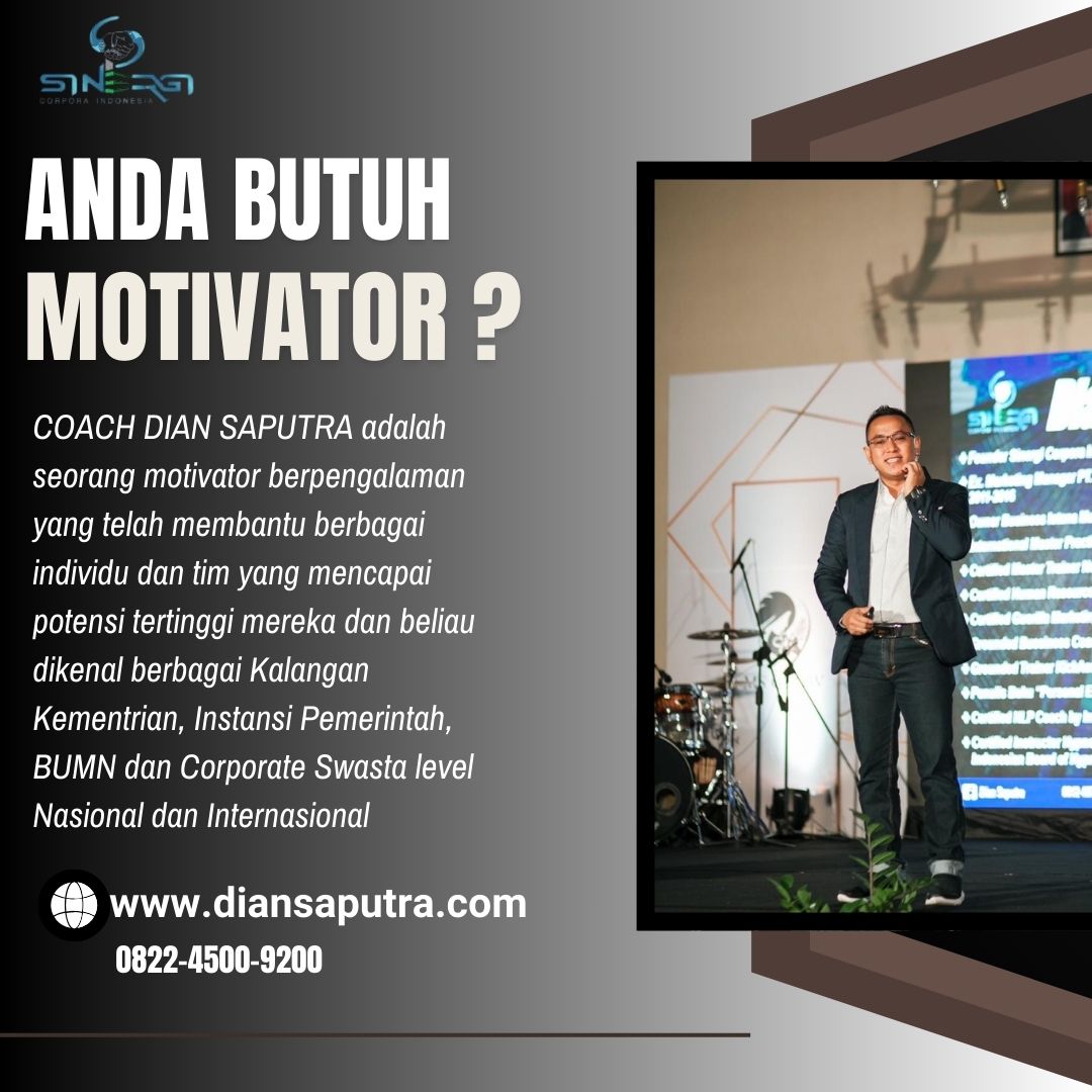 Anda Berada di Info Yang Tepat. Dian Saputra adalah seorang Motivator sekaligus Trainer sinergi corpora Indonesia yang sudah berpengalaman selama 13 Tahun. Coach Dian Saputra selalu memberikan materi yang fun dan Berdampak guna meningkatkan kinerja dan produktivitas SDM di Bisnis Anda. Coach Dian Saputra dikenal oleh Kalangan Corporate Seperti BUMN, Dinas Pemerintah, Kementerian, Hingga Corporate Swasta Lainnya berskala Nasional dan Internasional.