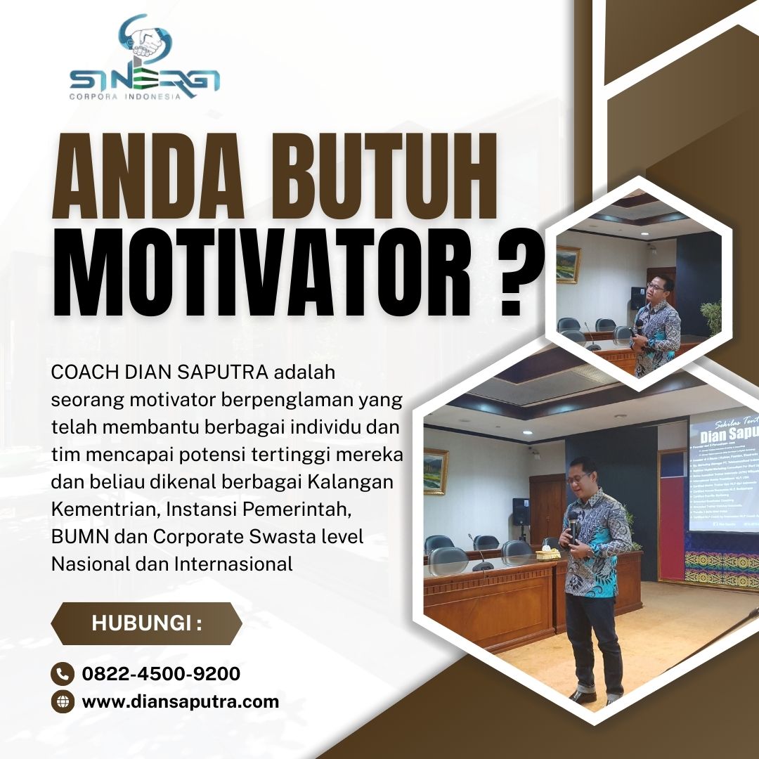 Anda Berada di Info Yang Tepat. Dian Saputra adalah seorang Motivator sekaligus Trainer sinergi corpora Indonesia yang sudah berpengalaman selama 13 Tahun. Coach Dian Saputra selalu memberikan materi yang fun dan Berdampak guna meningkatkan kinerja dan produktivitas SDM di Bisnis Anda. Coach Dian Saputra dikenal oleh Kalangan Corporate Seperti BUMN, Dinas Pemerintah, Kementerian, Hingga Corporate Swasta Lainnya berskala Nasional dan Internasional.