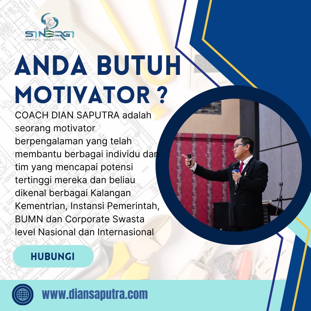 Anda Berada di Info Yang Tepat. Dian Saputra adalah seorang Motivator sekaligus Trainer sinergi corpora Indonesia yang sudah berpengalaman selama 13 Tahun. Coach Dian Saputra selalu memberikan materi yang fun dan Berdampak guna meningkatkan kinerja dan produktivitas SDM di Bisnis Anda. Coach Dian Saputra dikenal oleh Kalangan Corporate Seperti BUMN, Dinas Pemerintah, Kementerian, Hingga Corporate Swasta Lainnya berskala Nasional dan Internasional.
