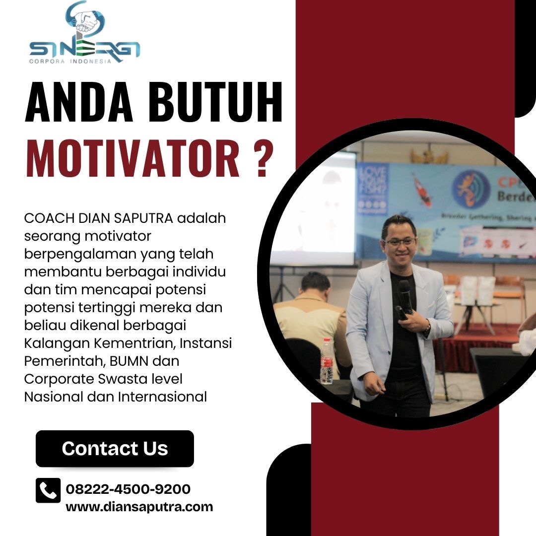 Anda Berada di Info Yang Tepat. Dian Saputra adalah seorang Motivator sekaligus Trainer sinergi corpora Indonesia yang sudah berpengalaman selama 13 Tahun. Coach Dian Saputra selalu memberikan materi yang fun dan Berdampak guna meningkatkan kinerja dan produktivitas SDM di Bisnis Anda. Coach Dian Saputra dikenal oleh Kalangan Corporate Seperti BUMN, Dinas Pemerintah, Kementerian, Hingga Corporate Swasta Lainnya berskala Nasional dan Internasional.
