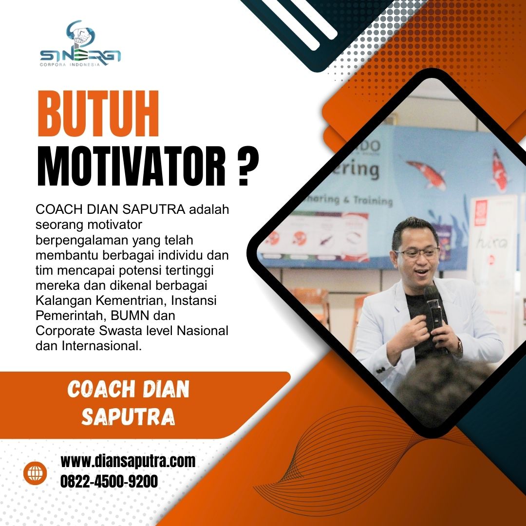 Anda Berada di Info Yang Tepat. Dian Saputra adalah seorang Motivator sekaligus Trainer sinergi corpora Indonesia yang sudah berpengalaman selama 13 Tahun. Coach Dian Saputra selalu memberikan materi yang fun dan Berdampak guna meningkatkan kinerja dan produktivitas SDM di Bisnis Anda. Coach Dian Saputra dikenal oleh Kalangan Corporate Seperti BUMN, Dinas Pemerintah, Kementerian, Hingga Corporate Swasta Lainnya berskala Nasional dan Internasional.