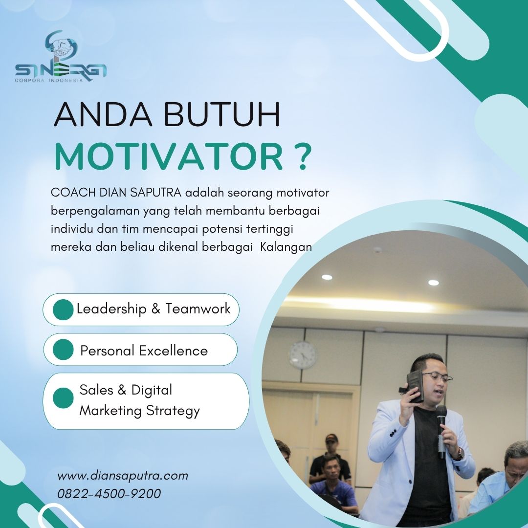Anda Berada di Info Yang Tepat. Dian Saputra adalah seorang Motivator sekaligus Trainer sinergi corpora Indonesia yang sudah berpengalaman selama 13 Tahun. Coach Dian Saputra selalu memberikan materi yang fun dan Berdampak guna meningkatkan kinerja dan produktivitas SDM di Bisnis Anda. Coach Dian Saputra dikenal oleh Kalangan Corporate Seperti BUMN, Dinas Pemerintah, Kementerian, Hingga Corporate Swasta Lainnya berskala Nasional dan Internasional.