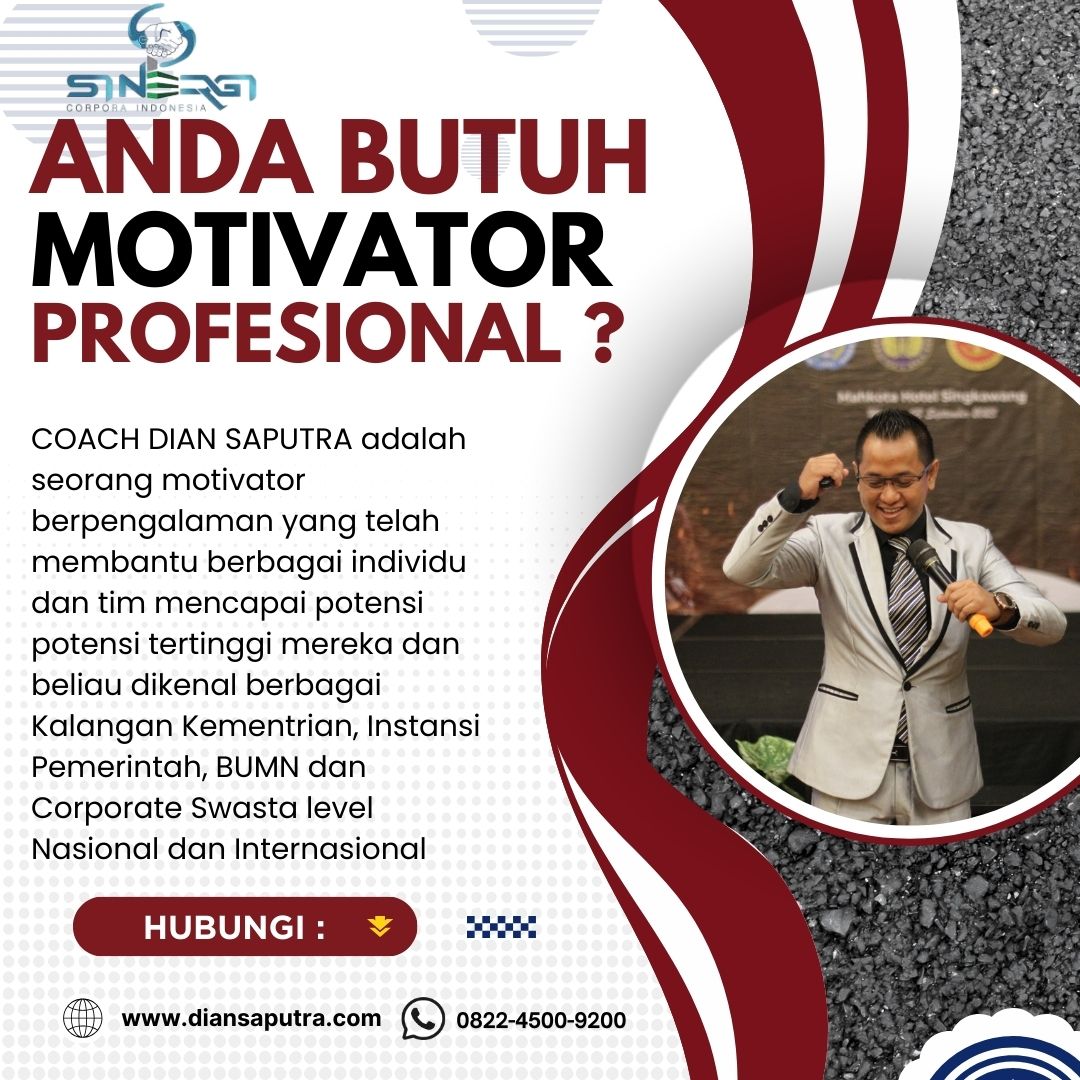 Anda Berada di Info Yang Tepat. Dian Saputra adalah seorang Motivator sekaligus Trainer sinergi corpora Indonesia yang sudah berpengalaman selama 13 Tahun. Coach Dian Saputra selalu memberikan materi yang fun dan Berdampak guna meningkatkan kinerja dan produktivitas SDM di Bisnis Anda. Coach Dian Saputra dikenal oleh Kalangan Corporate Seperti BUMN, Dinas Pemerintah, Kementerian, Hingga Corporate Swasta Lainnya berskala Nasional dan Internasional.