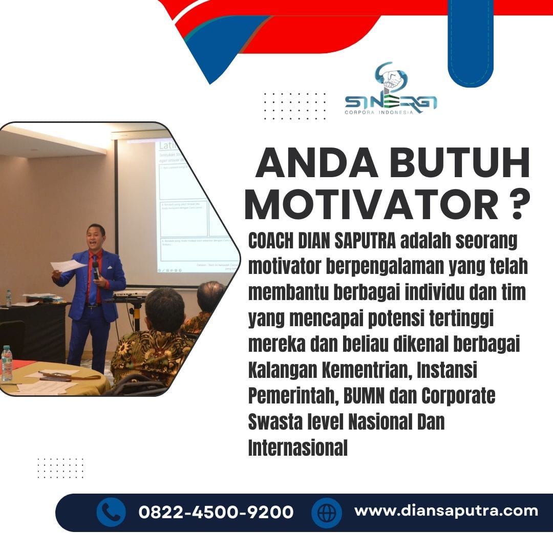Anda Berada di Info Yang Tepat. Dian Saputra adalah seorang Motivator sekaligus Trainer sinergi corpora Indonesia yang sudah berpengalaman selama 13 Tahun. Coach Dian Saputra selalu memberikan materi yang fun dan Berdampak guna meningkatkan kinerja dan produktivitas SDM di Bisnis Anda. Coach Dian Saputra dikenal oleh Kalangan Corporate Seperti BUMN, Dinas Pemerintah, Kementerian, Hingga Corporate Swasta Lainnya berskala Nasional dan Internasional.