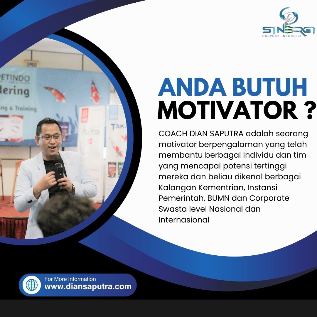 Anda Berada di Info Yang Tepat. Dian Saputra adalah seorang Motivator sekaligus Trainer sinergi corpora Indonesia yang sudah berpengalaman selama 13 Tahun. Coach Dian Saputra selalu memberikan materi yang fun dan Berdampak guna meningkatkan kinerja dan produktivitas SDM di Bisnis Anda. Coach Dian Saputra dikenal oleh Kalangan Corporate Seperti BUMN, Dinas Pemerintah, Kementerian, Hingga Corporate Swasta Lainnya berskala Nasional dan Internasional.