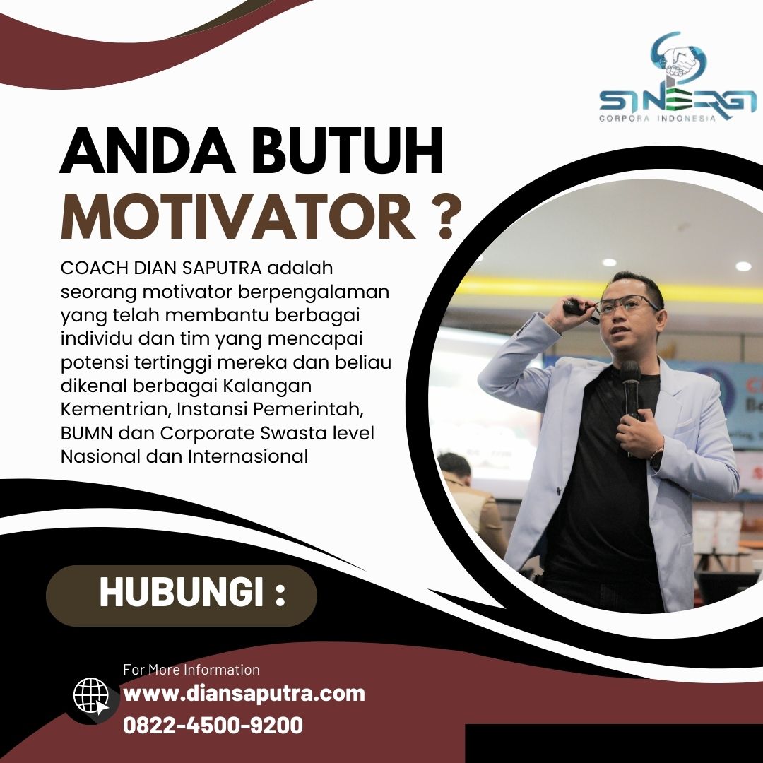 Anda Berada di Info Yang Tepat. Dian Saputra adalah seorang Motivator sekaligus Trainer sinergi corpora Indonesia yang sudah berpengalaman selama 13 Tahun. Coach Dian Saputra selalu memberikan materi yang fun dan Berdampak guna meningkatkan kinerja dan produktivitas SDM di Bisnis Anda. Coach Dian Saputra dikenal oleh Kalangan Corporate Seperti BUMN, Dinas Pemerintah, Kementerian, Hingga Corporate Swasta Lainnya berskala Nasional dan Internasional.