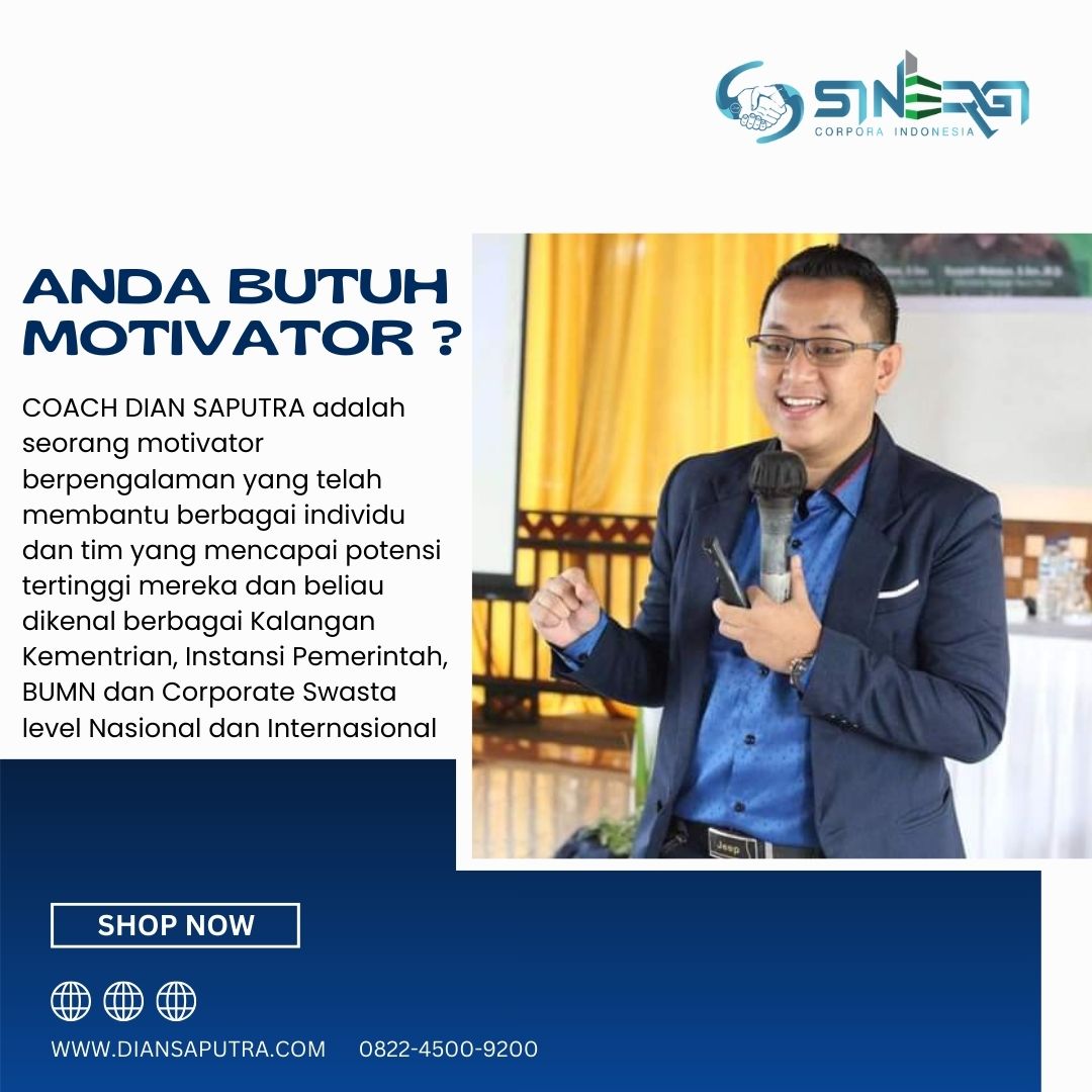 Anda Berada di Info Yang Tepat. Dian Saputra adalah seorang Motivator sekaligus Trainer sinergi corpora Indonesia yang sudah berpengalaman selama 13 Tahun. Coach Dian Saputra selalu memberikan materi yang fun dan Berdampak guna meningkatkan kinerja dan produktivitas SDM di Bisnis Anda. Coach Dian Saputra dikenal oleh Kalangan Corporate Seperti BUMN, Dinas Pemerintah, Kementerian, Hingga Corporate Swasta Lainnya berskala Nasional dan Internasional.