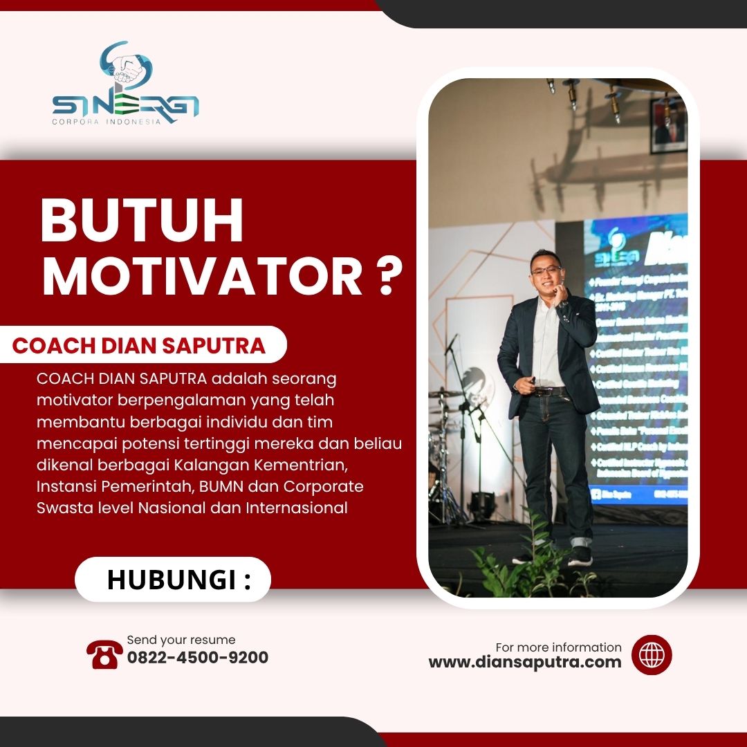 Anda Berada di Info Yang Tepat. Dian Saputra adalah seorang Motivator sekaligus Trainer sinergi corpora Indonesia yang sudah berpengalaman selama 13 Tahun. Coach Dian Saputra selalu memberikan materi yang fun dan Berdampak guna meningkatkan kinerja dan produktivitas SDM di Bisnis Anda. Coach Dian Saputra dikenal oleh Kalangan Corporate Seperti BUMN, Dinas Pemerintah, Kementerian, Hingga Corporate Swasta Lainnya berskala Nasional dan Internasional.