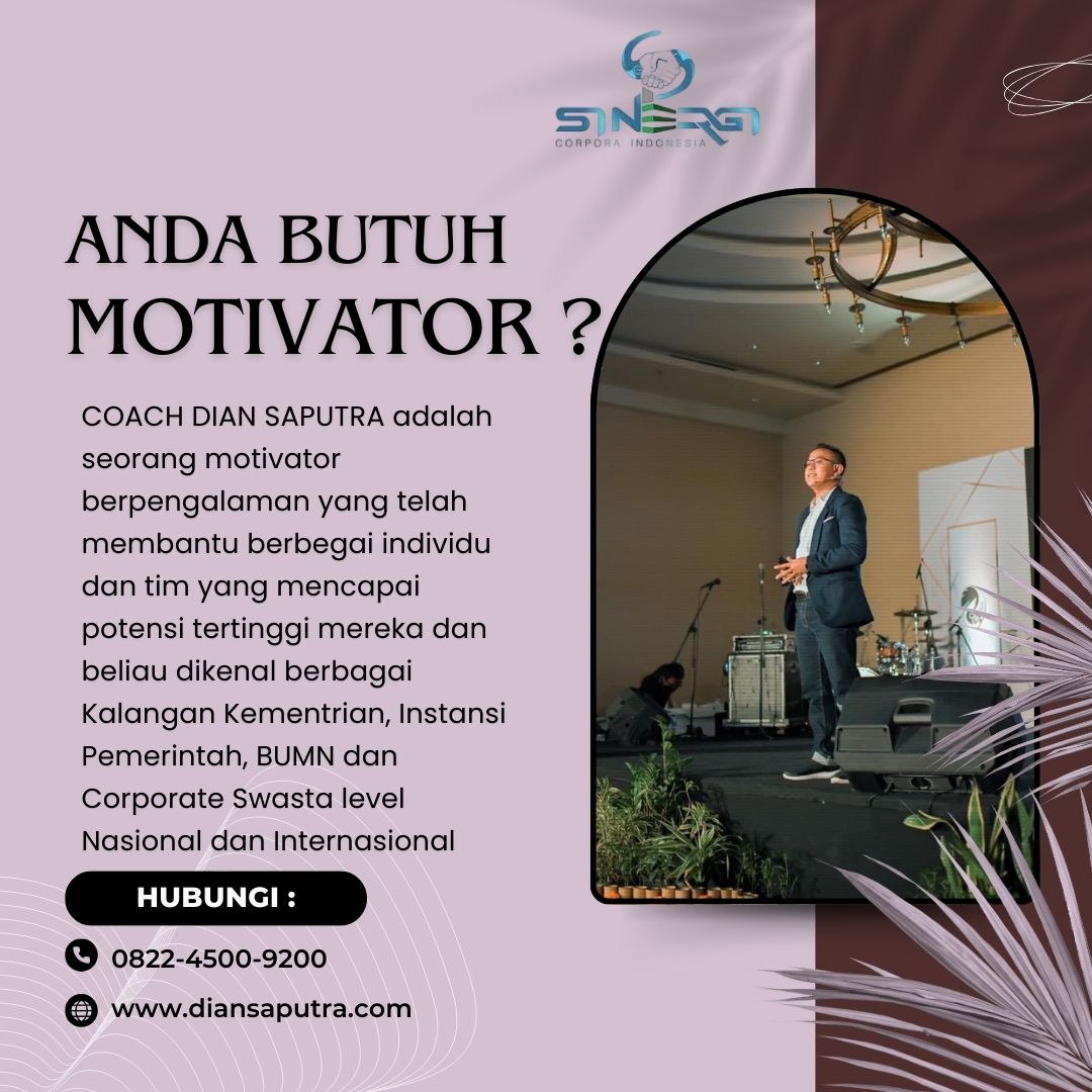 Anda Berada di Info Yang Tepat. Dian Saputra adalah seorang Motivator sekaligus Trainer sinergi corpora Indonesia yang sudah berpengalaman selama 13 Tahun. Coach Dian Saputra selalu memberikan materi yang fun dan Berdampak guna meningkatkan kinerja dan produktivitas SDM di Bisnis Anda. Coach Dian Saputra dikenal oleh Kalangan Corporate Seperti BUMN, Dinas Pemerintah, Kementerian, Hingga Corporate Swasta Lainnya berskala Nasional dan Internasional.