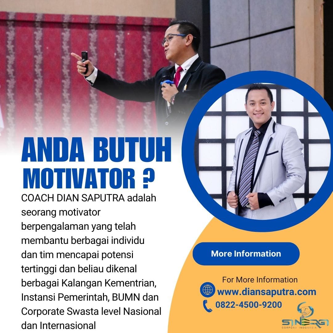 Anda Berada di Info Yang Tepat. Dian Saputra adalah seorang Motivator sekaligus Trainer sinergi corpora Indonesia yang sudah berpengalaman selama 13 Tahun. Coach Dian Saputra selalu memberikan materi yang fun dan Berdampak guna meningkatkan kinerja dan produktivitas SDM di Bisnis Anda. Coach Dian Saputra dikenal oleh Kalangan Corporate Seperti BUMN, Dinas Pemerintah, Kementerian, Hingga Corporate Swasta Lainnya berskala Nasional dan Internasional.