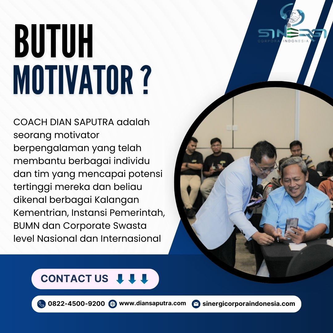 Anda Berada di Info Yang Tepat. Dian Saputra adalah seorang Motivator sekaligus Trainer sinergi corpora Indonesia yang sudah berpengalaman selama 13 Tahun. Coach Dian Saputra selalu memberikan materi yang fun dan Berdampak guna meningkatkan kinerja dan produktivitas SDM di Bisnis Anda. Coach Dian Saputra dikenal oleh Kalangan Corporate Seperti BUMN, Dinas Pemerintah, Kementerian, Hingga Corporate Swasta Lainnya berskala Nasional dan Internasional.