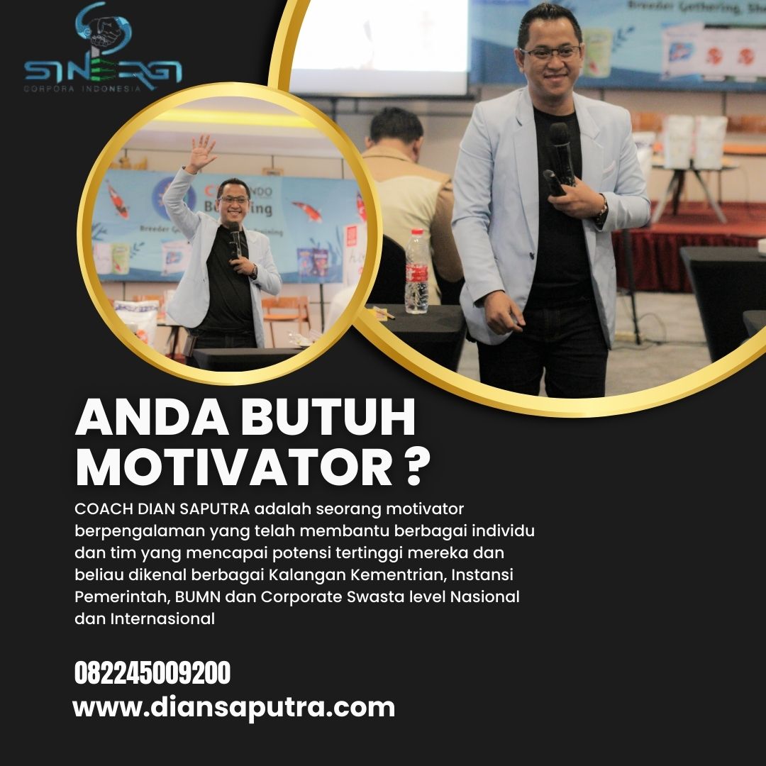 Anda Berada di Info Yang Tepat. Dian Saputra adalah seorang Motivator sekaligus Trainer sinergi corpora Indonesia yang sudah berpengalaman selama 13 Tahun. Coach Dian Saputra selalu memberikan materi yang fun dan Berdampak guna meningkatkan kinerja dan produktivitas SDM di Bisnis Anda. Coach Dian Saputra dikenal oleh Kalangan Corporate Seperti BUMN, Dinas Pemerintah, Kementerian, Hingga Corporate Swasta Lainnya berskala Nasional dan Internasional.