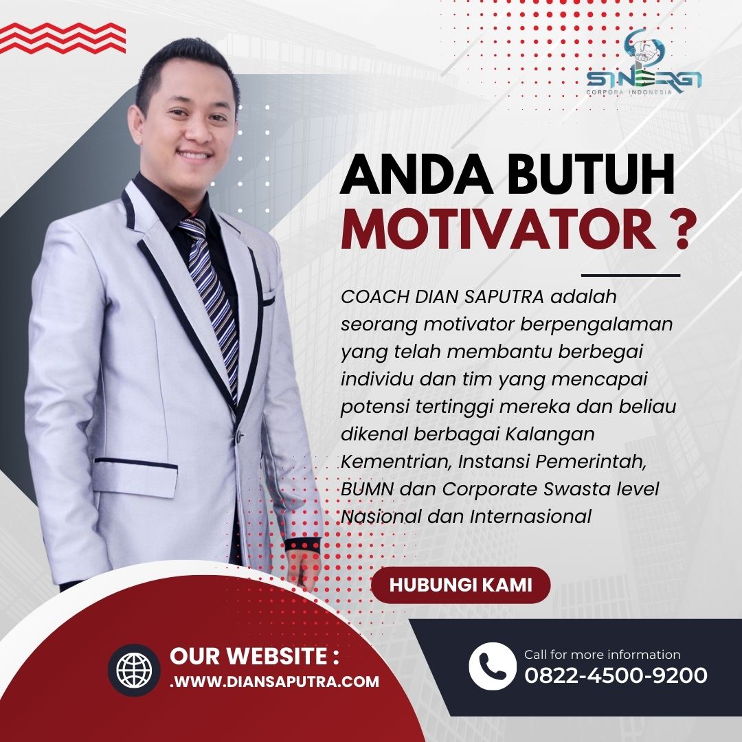Anda Berada di Info Yang Tepat. Dian Saputra adalah seorang Motivator sekaligus Trainer sinergi corpora Indonesia yang sudah berpengalaman selama 13 Tahun. Coach Dian Saputra selalu memberikan materi yang fun dan Berdampak guna meningkatkan kinerja dan produktivitas SDM di Bisnis Anda. Coach Dian Saputra dikenal oleh Kalangan Corporate Seperti BUMN, Dinas Pemerintah, Kementerian, Hingga Corporate Swasta Lainnya berskala Nasional dan Internasional.