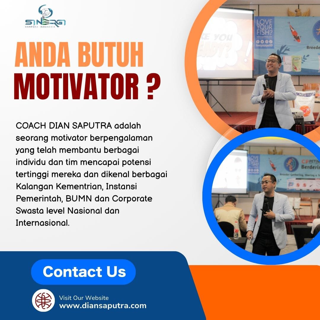 Anda Berada di Info Yang Tepat. Dian Saputra adalah seorang Motivator sekaligus Trainer sinergi corpora Indonesia yang sudah berpengalaman selama 13 Tahun. Coach Dian Saputra selalu memberikan materi yang fun dan Berdampak guna meningkatkan kinerja dan produktivitas SDM di Bisnis Anda. Coach Dian Saputra dikenal oleh Kalangan Corporate Seperti BUMN, Dinas Pemerintah, Kementerian, Hingga Corporate Swasta Lainnya berskala Nasional dan Internasional.