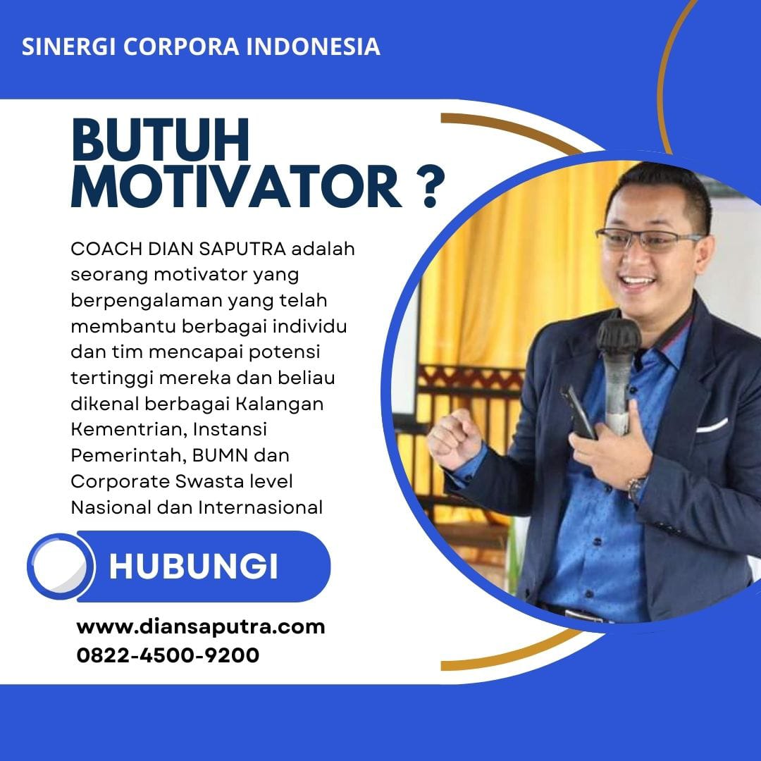 Anda Berada di Info Yang Tepat. Dian Saputra adalah seorang Motivator sekaligus Trainer sinergi corpora Indonesia yang sudah berpengalaman selama 13 Tahun. Coach Dian Saputra selalu memberikan materi yang fun dan Berdampak guna meningkatkan kinerja dan produktivitas SDM di Bisnis Anda. Coach Dian Saputra dikenal oleh Kalangan Corporate Seperti BUMN, Dinas Pemerintah, Kementerian, Hingga Corporate Swasta Lainnya berskala Nasional dan Internasional.