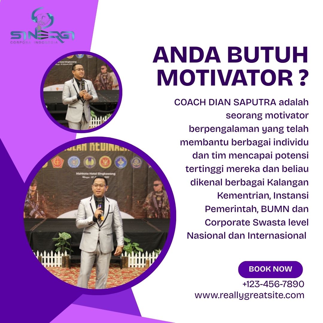 Anda Berada di Info Yang Tepat. Dian Saputra adalah seorang Motivator sekaligus Trainer sinergi corpora Indonesia yang sudah berpengalaman selama 13 Tahun. Coach Dian Saputra selalu memberikan materi yang fun dan Berdampak guna meningkatkan kinerja dan produktivitas SDM di Bisnis Anda. Coach Dian Saputra dikenal oleh Kalangan Corporate Seperti BUMN, Dinas Pemerintah, Kementerian, Hingga Corporate Swasta Lainnya berskala Nasional dan Internasional.