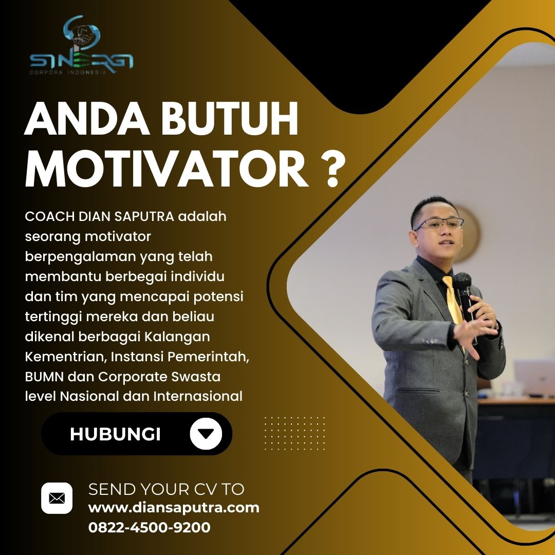 Anda Berada di Info Yang Tepat. Dian Saputra adalah seorang Motivator sekaligus Trainer sinergi corpora Indonesia yang sudah berpengalaman selama 13 Tahun. Coach Dian Saputra selalu memberikan materi yang fun dan Berdampak guna meningkatkan kinerja dan produktivitas SDM di Bisnis Anda. Coach Dian Saputra dikenal oleh Kalangan Corporate Seperti BUMN, Dinas Pemerintah, Kementerian, Hingga Corporate Swasta Lainnya berskala Nasional dan Internasional.