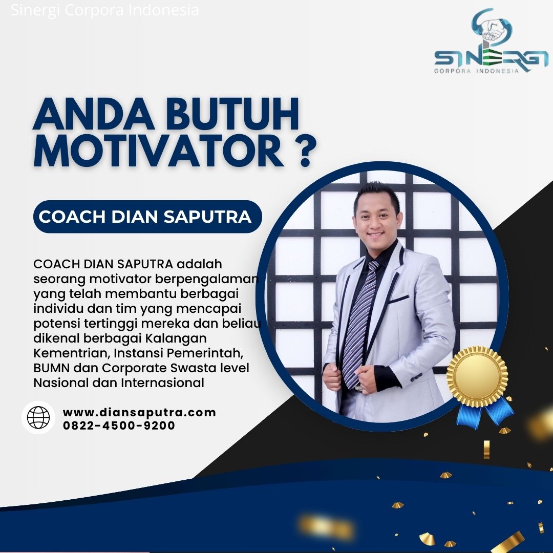 Anda Berada di Info Yang Tepat. Dian Saputra adalah seorang Motivator sekaligus Trainer sinergi corpora Indonesia yang sudah berpengalaman selama 13 Tahun. Coach Dian Saputra selalu memberikan materi yang fun dan Berdampak guna meningkatkan kinerja dan produktivitas SDM di Bisnis Anda. Coach Dian Saputra dikenal oleh Kalangan Corporate Seperti BUMN, Dinas Pemerintah, Kementerian, Hingga Corporate Swasta Lainnya berskala Nasional dan Internasional.