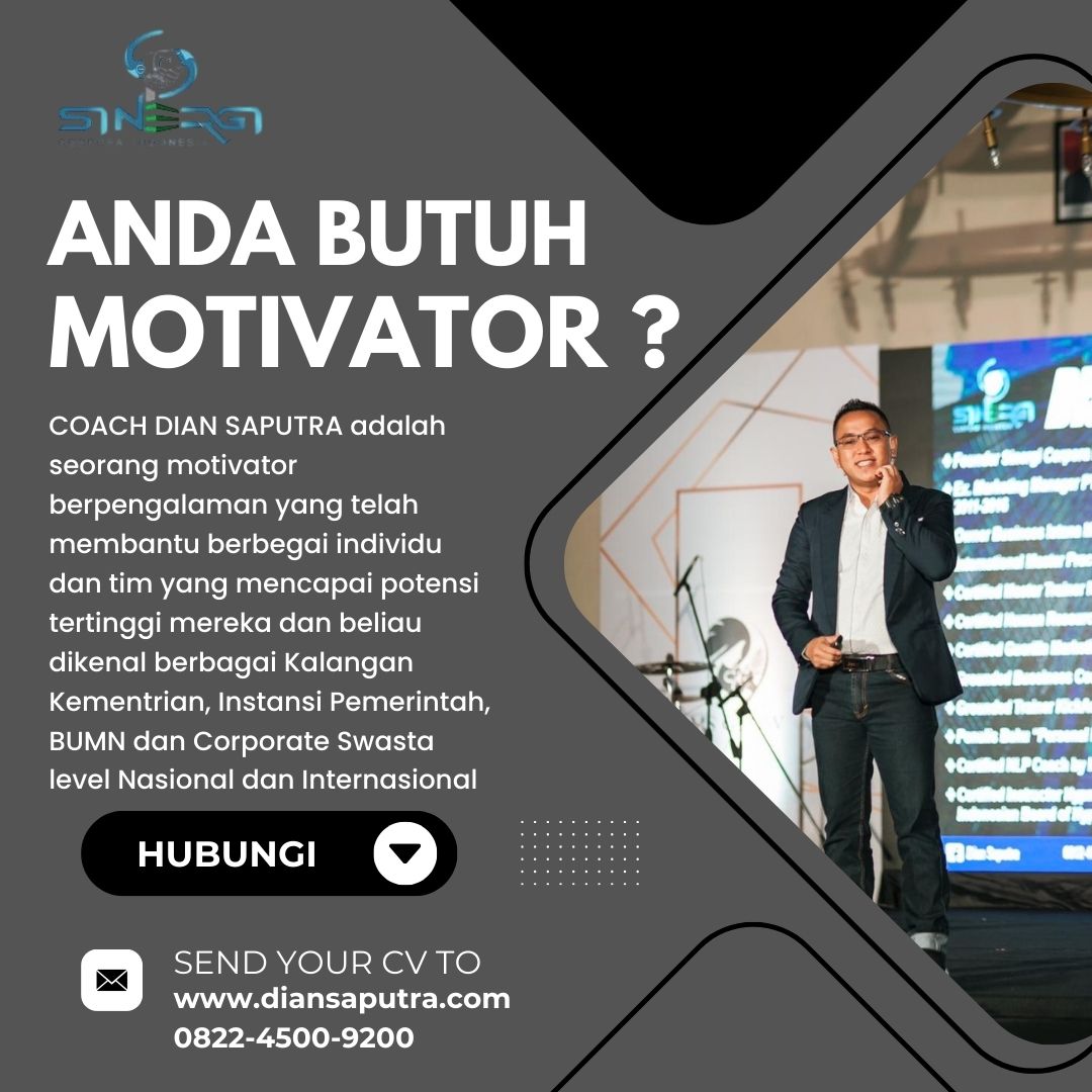 Anda Berada di Info Yang Tepat. Dian Saputra adalah seorang Motivator sekaligus Trainer sinergi corpora Indonesia yang sudah berpengalaman selama 13 Tahun. Coach Dian Saputra selalu memberikan materi yang fun dan Berdampak guna meningkatkan kinerja dan produktivitas SDM di Bisnis Anda. Coach Dian Saputra dikenal oleh Kalangan Corporate Seperti BUMN, Dinas Pemerintah, Kementerian, Hingga Corporate Swasta Lainnya berskala Nasional dan Internasional.