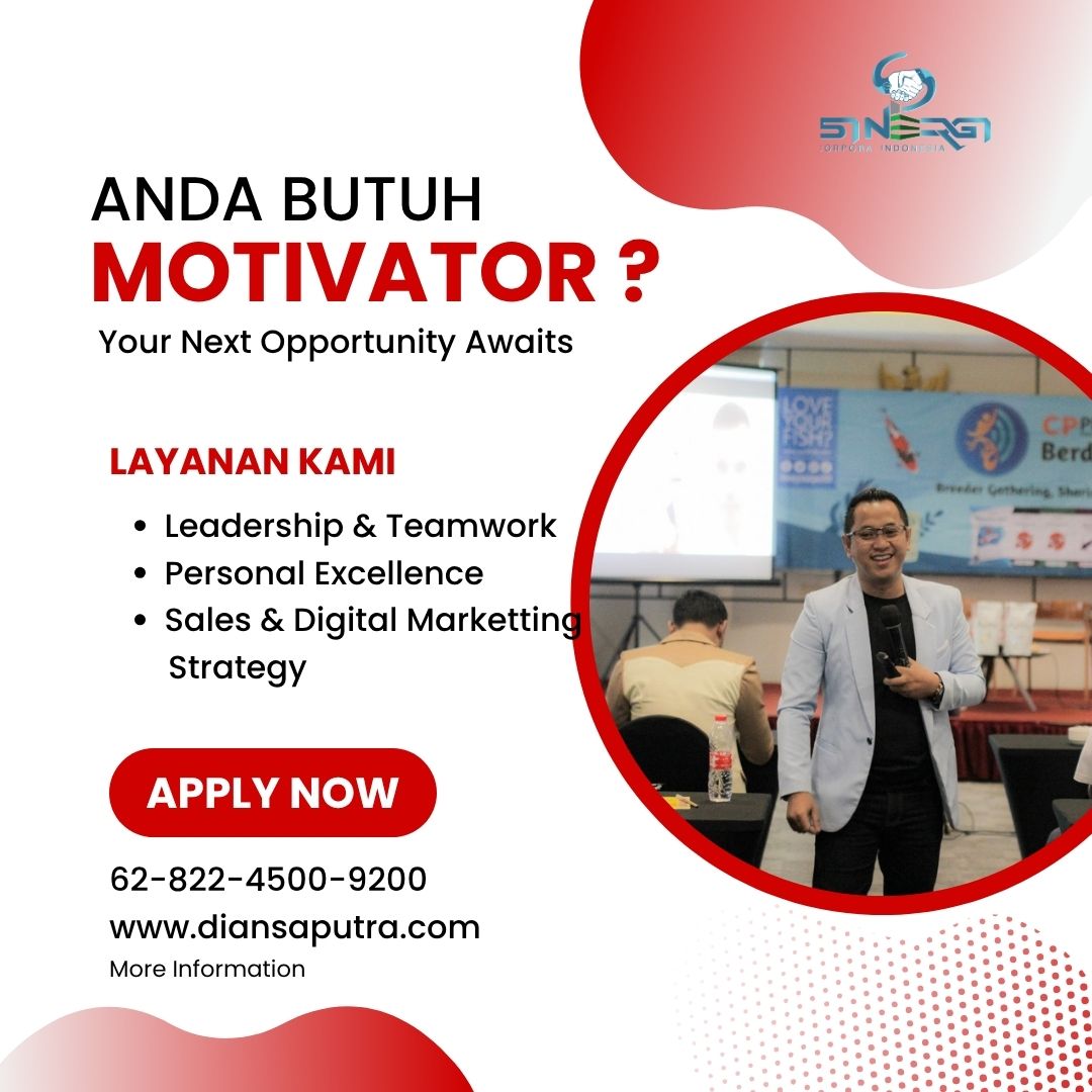 Anda Berada di Info Yang Tepat. Dian Saputra adalah seorang Motivator sekaligus Trainer sinergi corpora Indonesia yang sudah berpengalaman selama 13 Tahun. Coach Dian Saputra selalu memberikan materi yang fun dan Berdampak guna meningkatkan kinerja dan produktivitas SDM di Bisnis Anda. Coach Dian Saputra dikenal oleh Kalangan Corporate Seperti BUMN, Dinas Pemerintah, Kementerian, Hingga Corporate Swasta Lainnya berskala Nasional dan Internasional.