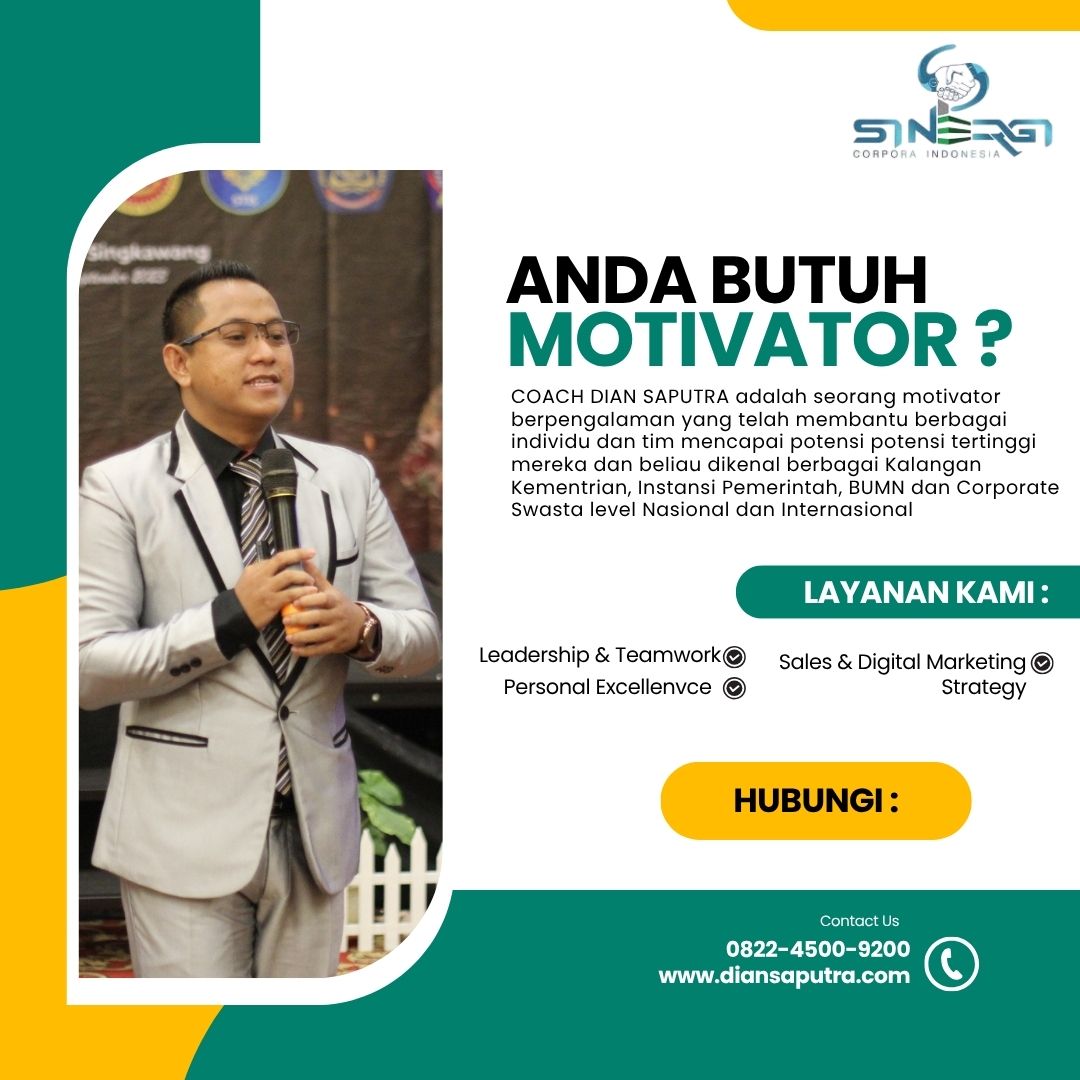 Anda Berada di Info Yang Tepat. Dian Saputra adalah seorang Motivator sekaligus Trainer sinergi corpora Indonesia yang sudah berpengalaman selama 13 Tahun. Coach Dian Saputra selalu memberikan materi yang fun dan Berdampak guna meningkatkan kinerja dan produktivitas SDM di Bisnis Anda. Coach Dian Saputra dikenal oleh Kalangan Corporate Seperti BUMN, Dinas Pemerintah, Kementerian, Hingga Corporate Swasta Lainnya berskala Nasional dan Internasional.
