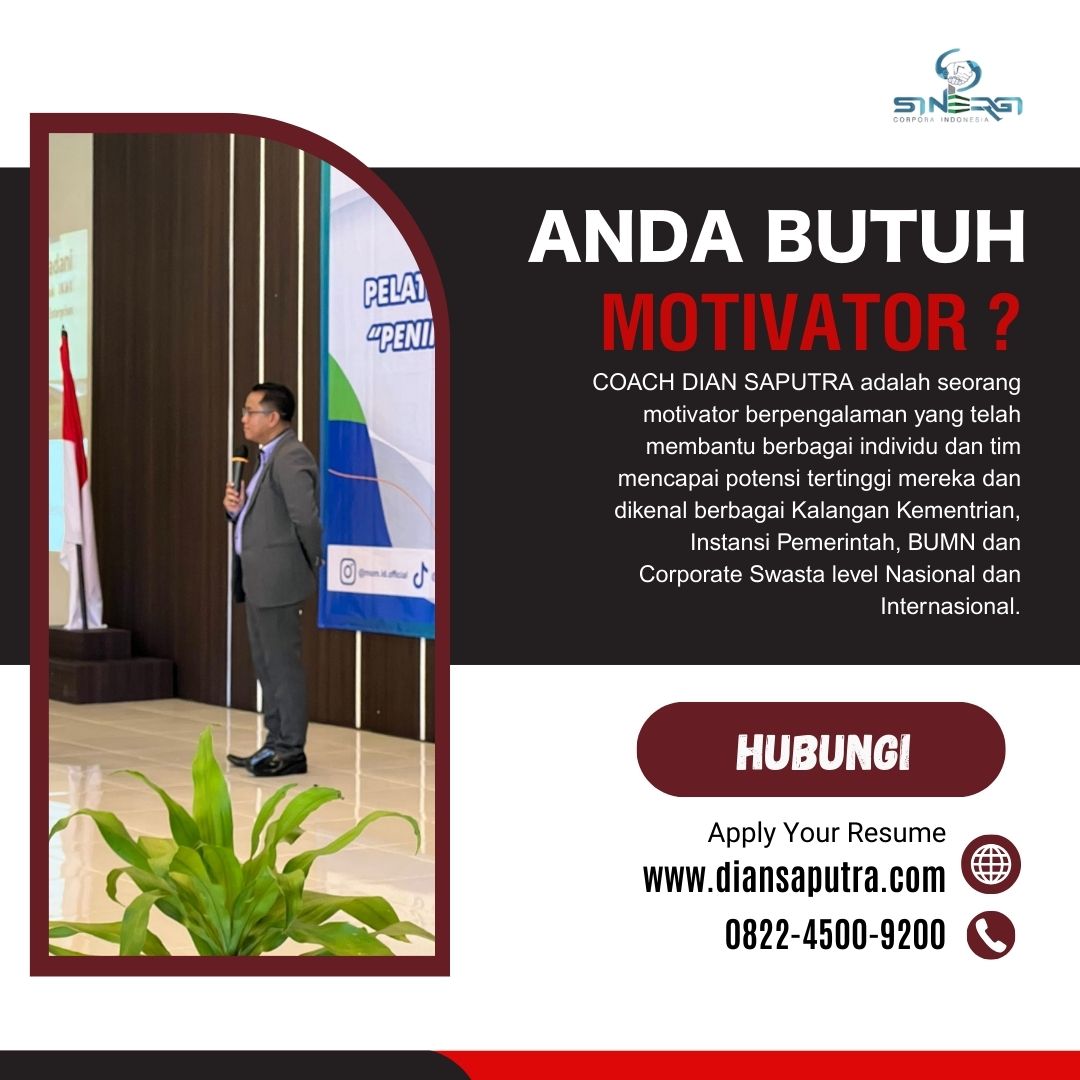Anda Berada di Info Yang Tepat. Dian Saputra adalah seorang Motivator sekaligus Trainer sinergi corpora Indonesia yang sudah berpengalaman selama 13 Tahun. Coach Dian Saputra selalu memberikan materi yang fun dan Berdampak guna meningkatkan kinerja dan produktivitas SDM di Bisnis Anda. Coach Dian Saputra dikenal oleh Kalangan Corporate Seperti BUMN, Dinas Pemerintah, Kementerian, Hingga Corporate Swasta Lainnya berskala Nasional dan Internasional.