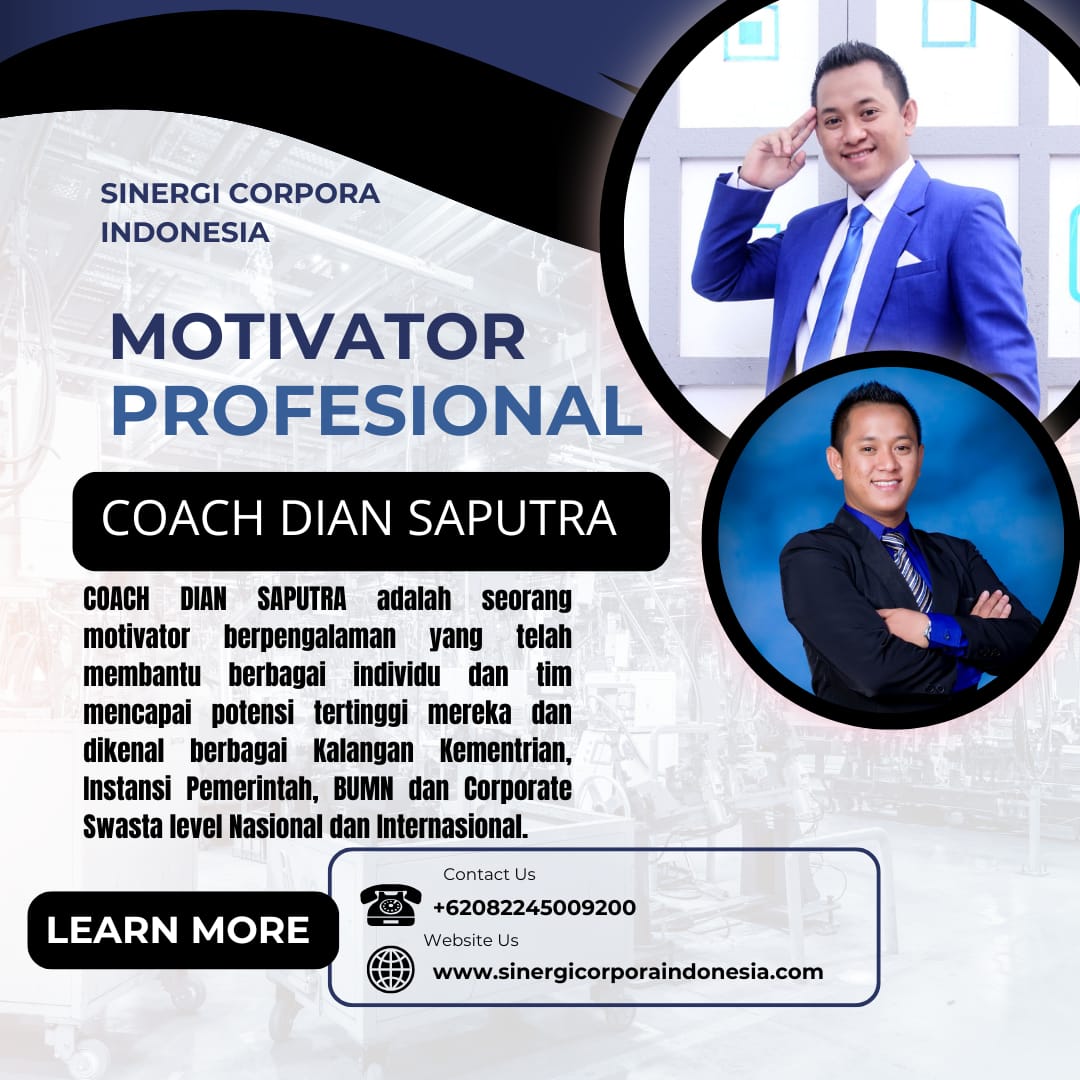 pelatihan dan pengembangan SDM yang berdiri sejak 2011, dipimpin langsung oleh Coach Dian Saputra, seorang keyword profesional yang berpengalaman dalam membangun kualitas individu maupun organisasi. Dengan spesialisasi di bidang leadership, sales, service excellence, dan pengembangan soft skill, Sinergi Corpora hadir untuk membantu perusahaan, instansi, maupun organisasi mencapai potensi terbaiknya.