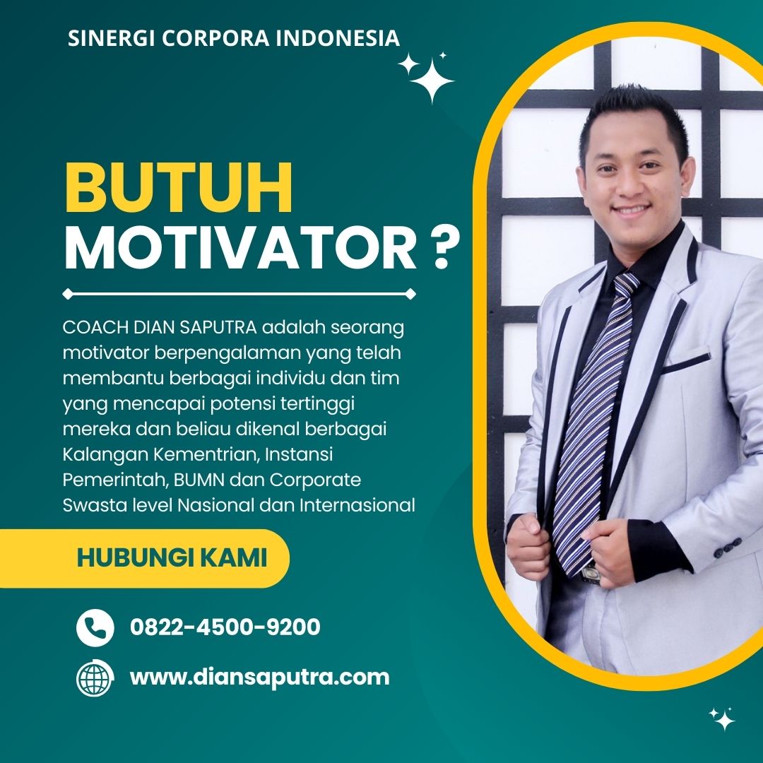 Anda Berada di Info Yang Tepat. Dian Saputra adalah seorang Motivator sekaligus Trainer sinergi corpora Indonesia yang sudah berpengalaman selama 13 Tahun. Coach Dian Saputra selalu memberikan materi yang fun dan Berdampak guna meningkatkan kinerja dan produktivitas SDM di Bisnis Anda. Coach Dian Saputra dikenal oleh Kalangan Corporate Seperti BUMN, Dinas Pemerintah, Kementerian, Hingga Corporate Swasta Lainnya berskala Nasional dan Internasional.