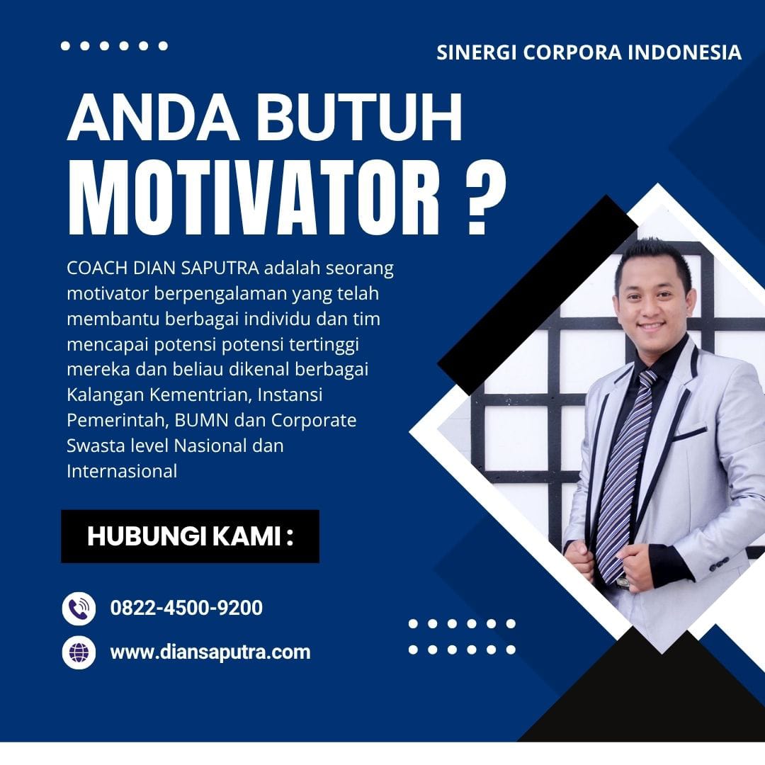 Anda Berada di Info Yang Tepat. Dian Saputra adalah seorang Motivator sekaligus Trainer sinergi corpora Indonesia yang sudah berpengalaman selama 13 Tahun. Coach Dian Saputra selalu memberikan materi yang fun dan Berdampak guna meningkatkan kinerja dan produktivitas SDM di Bisnis Anda. Coach Dian Saputra dikenal oleh Kalangan Corporate Seperti BUMN, Dinas Pemerintah, Kementerian, Hingga Corporate Swasta Lainnya berskala Nasional dan Internasional.