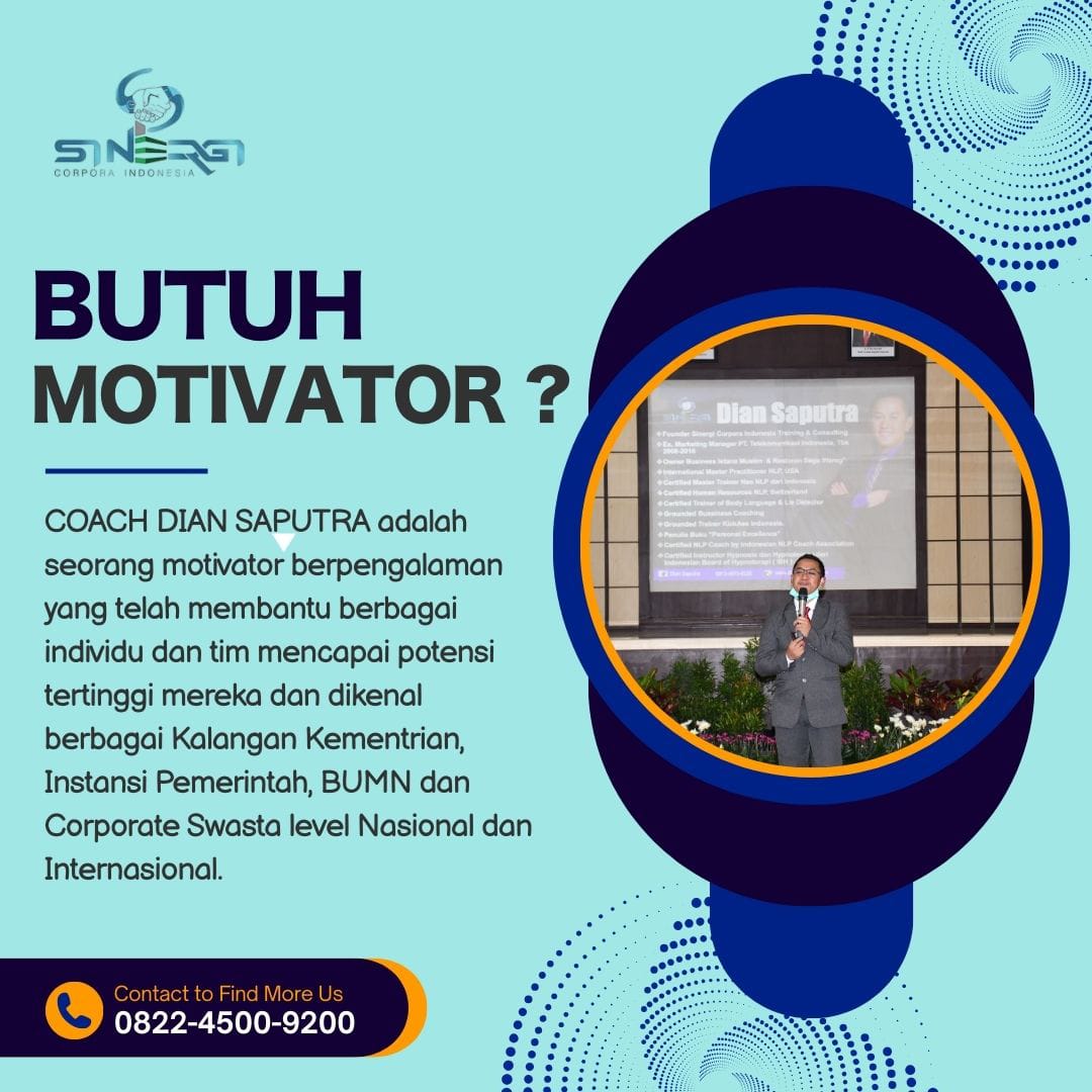 Anda Berada di Info Yang Tepat. Dian Saputra adalah seorang Motivator sekaligus Trainer sinergi corpora Indonesia yang sudah berpengalaman selama 13 Tahun. Coach Dian Saputra selalu memberikan materi yang fun dan Berdampak guna meningkatkan kinerja dan produktivitas SDM di Bisnis Anda. Coach Dian Saputra dikenal oleh Kalangan Corporate Seperti BUMN, Dinas Pemerintah, Kementerian, Hingga Corporate Swasta Lainnya berskala Nasional dan Internasional.