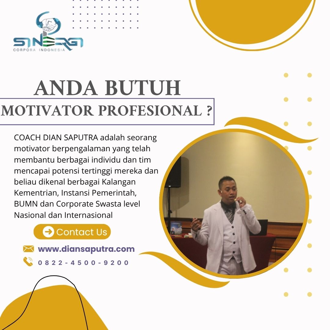 Anda Berada di Info Yang Tepat. Dian Saputra adalah seorang Motivator sekaligus Trainer sinergi corpora Indonesia yang sudah berpengalaman selama 13 Tahun. Coach Dian Saputra selalu memberikan materi yang fun dan Berdampak guna meningkatkan kinerja dan produktivitas SDM di Bisnis Anda. Coach Dian Saputra dikenal oleh Kalangan Corporate Seperti BUMN, Dinas Pemerintah, Kementerian, Hingga Corporate Swasta Lainnya berskala Nasional dan Internasional.