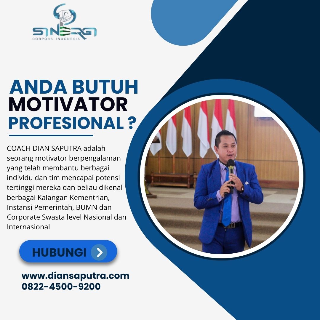 Anda Berada di Info Yang Tepat. Dian Saputra adalah seorang Motivator sekaligus Trainer sinergi corpora Indonesia yang sudah berpengalaman selama 13 Tahun. Coach Dian Saputra selalu memberikan materi yang fun dan Berdampak guna meningkatkan kinerja dan produktivitas SDM di Bisnis Anda. Coach Dian Saputra dikenal oleh Kalangan Corporate Seperti BUMN, Dinas Pemerintah, Kementerian, Hingga Corporate Swasta Lainnya berskala Nasional dan Internasional.
