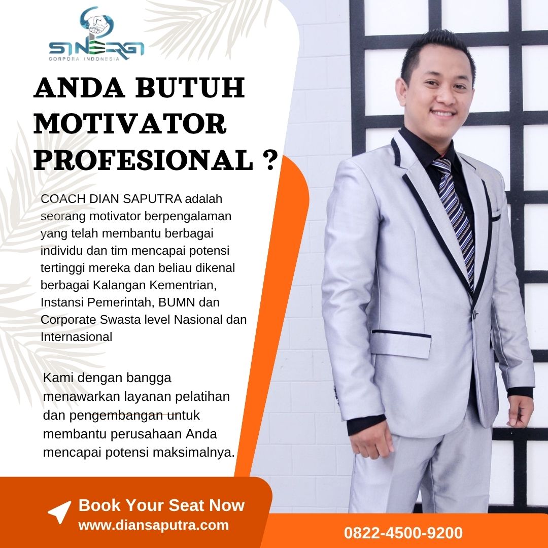 Anda Berada di Info Yang Tepat. Dian Saputra adalah seorang Motivator sekaligus Trainer sinergi corpora Indonesia yang sudah berpengalaman selama 13 Tahun. Coach Dian Saputra selalu memberikan materi yang fun dan Berdampak guna meningkatkan kinerja dan produktivitas SDM di Bisnis Anda. Coach Dian Saputra dikenal oleh Kalangan Corporate Seperti BUMN, Dinas Pemerintah, Kementerian, Hingga Corporate Swasta Lainnya berskala Nasional dan Internasional.