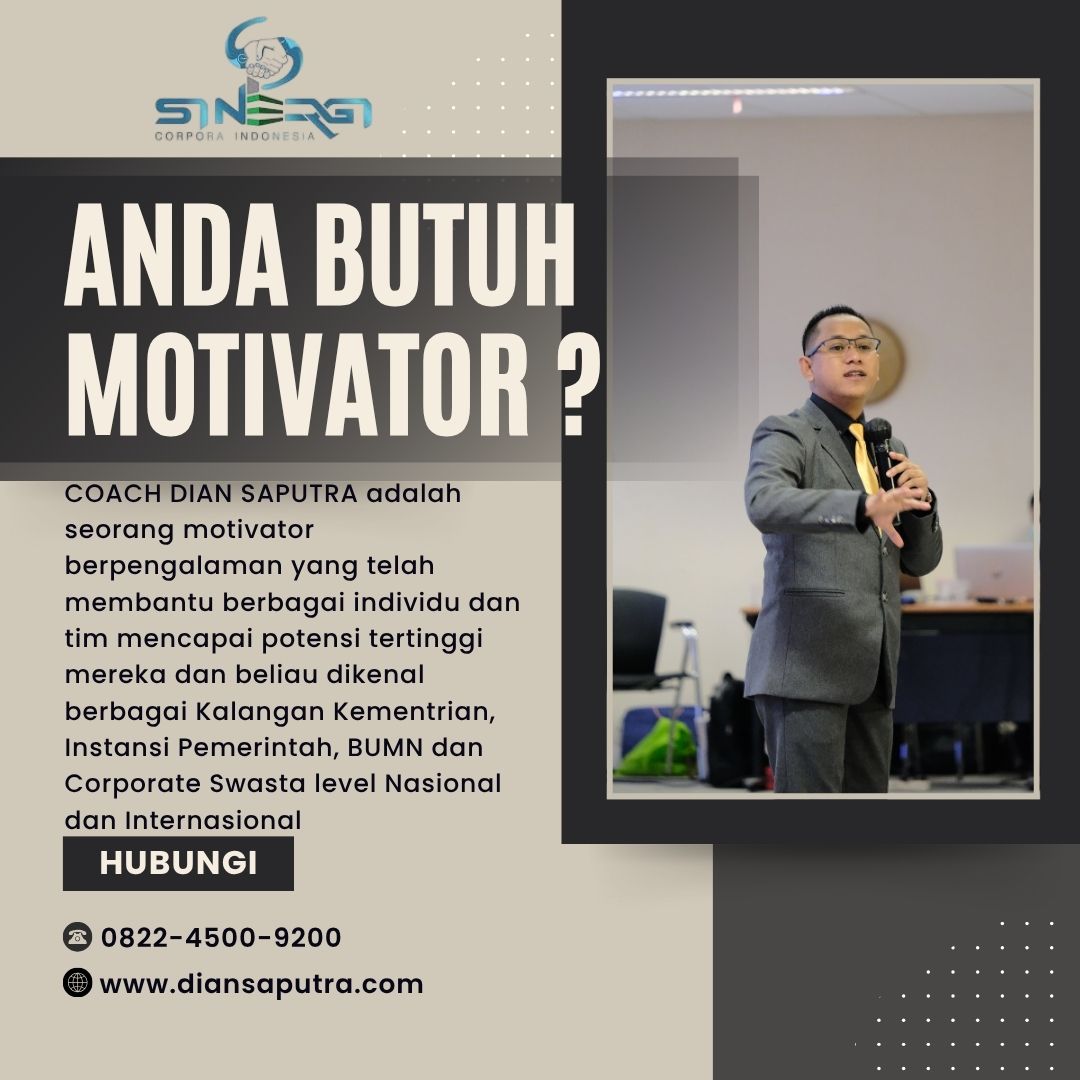 Anda Berada di Info Yang Tepat. Dian Saputra adalah seorang Motivator sekaligus Trainer sinergi corpora Indonesia yang sudah berpengalaman selama 13 Tahun. Coach Dian Saputra selalu memberikan materi yang fun dan Berdampak guna meningkatkan kinerja dan produktivitas SDM di Bisnis Anda. Coach Dian Saputra dikenal oleh Kalangan Corporate Seperti BUMN, Dinas Pemerintah, Kementerian, Hingga Corporate Swasta Lainnya berskala Nasional dan Internasional.