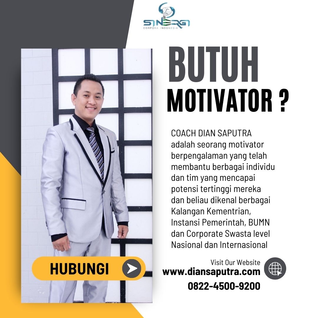Anda Berada di Info Yang Tepat. Dian Saputra adalah seorang Motivator sekaligus Trainer sinergi corpora Indonesia yang sudah berpengalaman selama 13 Tahun. Coach Dian Saputra selalu memberikan materi yang fun dan Berdampak guna meningkatkan kinerja dan produktivitas SDM di Bisnis Anda. Coach Dian Saputra dikenal oleh Kalangan Corporate Seperti BUMN, Dinas Pemerintah, Kementerian, Hingga Corporate Swasta Lainnya berskala Nasional dan Internasional.