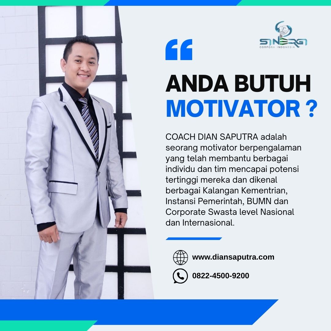 Anda Berada di Info Yang Tepat. Dian Saputra adalah seorang Motivator sekaligus Trainer sinergi corpora Indonesia yang sudah berpengalaman selama 13 Tahun. Coach Dian Saputra selalu memberikan materi yang fun dan Berdampak guna meningkatkan kinerja dan produktivitas SDM di Bisnis Anda. Coach Dian Saputra dikenal oleh Kalangan Corporate Seperti BUMN, Dinas Pemerintah, Kementerian, Hingga Corporate Swasta Lainnya berskala Nasional dan Internasional.