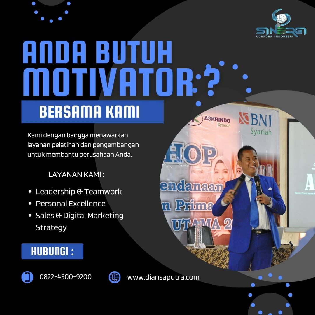 Anda Berada di Info Yang Tepat. Dian Saputra adalah seorang Motivator sekaligus Trainer sinergi corpora Indonesia yang sudah berpengalaman selama 13 Tahun. Coach Dian Saputra selalu memberikan materi yang fun dan Berdampak guna meningkatkan kinerja dan produktivitas SDM di Bisnis Anda. Coach Dian Saputra dikenal oleh Kalangan Corporate Seperti BUMN, Dinas Pemerintah, Kementerian, Hingga Corporate Swasta Lainnya berskala Nasional dan Internasional.