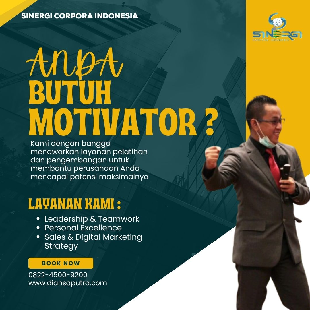 Anda Berada di Info Yang Tepat. Dian Saputra adalah seorang Motivator sekaligus Trainer sinergi corpora Indonesia yang sudah berpengalaman selama 13 Tahun. Coach Dian Saputra selalu memberikan materi yang fun dan Berdampak guna meningkatkan kinerja dan produktivitas SDM di Bisnis Anda. Coach Dian Saputra dikenal oleh Kalangan Corporate Seperti BUMN, Dinas Pemerintah, Kementerian, Hingga Corporate Swasta Lainnya berskala Nasional dan Internasional.