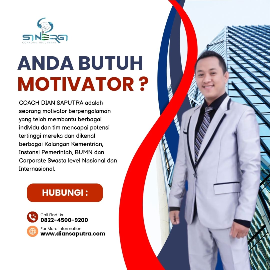 Anda Berada di Info Yang Tepat. Dian Saputra adalah seorang Motivator sekaligus Trainer sinergi corpora Indonesia yang sudah berpengalaman selama 13 Tahun. Coach Dian Saputra selalu memberikan materi yang fun dan Berdampak guna meningkatkan kinerja dan produktivitas SDM di Bisnis Anda. Coach Dian Saputra dikenal oleh Kalangan Corporate Seperti BUMN, Dinas Pemerintah, Kementerian, Hingga Corporate Swasta Lainnya berskala Nasional dan Internasional.