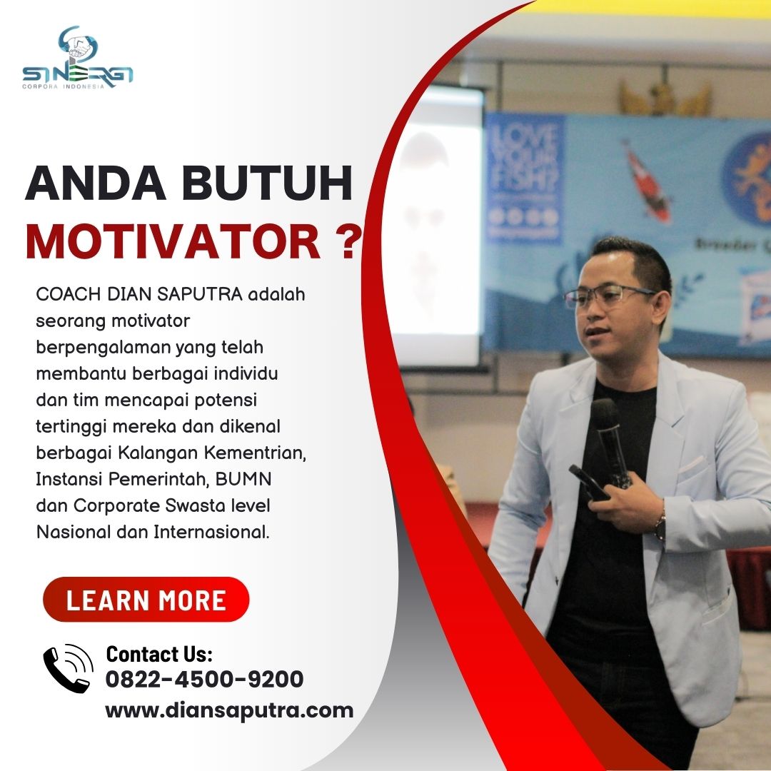 Anda Berada di Info Yang Tepat. Dian Saputra adalah seorang Motivator sekaligus Trainer sinergi corpora Indonesia yang sudah berpengalaman selama 13 Tahun. Coach Dian Saputra selalu memberikan materi yang fun dan Berdampak guna meningkatkan kinerja dan produktivitas SDM di Bisnis Anda. Coach Dian Saputra dikenal oleh Kalangan Corporate Seperti BUMN, Dinas Pemerintah, Kementerian, Hingga Corporate Swasta Lainnya berskala Nasional dan Internasional.