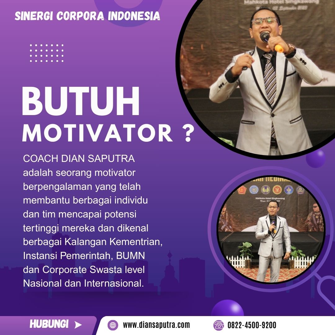 Sinergi Corpora Indonesia hadir sebagai lembaga yang dipimpin oleh Coach Dian Saputra, sebagai Jasa Motivator Terkenal Salatiga yang telah banyak memberikan inspirasi dan strategi sukses bagi berbagai kalangan. Dengan pengalaman mendampingi individu hingga perusahaan, Sinergi Corpora Indonesia berdiri sebagai mitra terpercaya dalam pengembangan diri dan peningkatan kinerja tim.