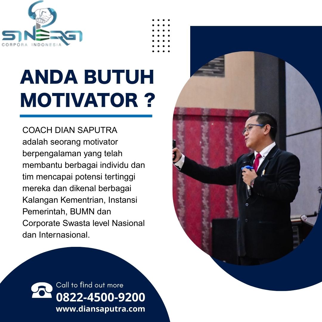 Anda Berada di Info Yang Tepat. Dian Saputra adalah seorang Motivator sekaligus Trainer sinergi corpora Indonesia yang sudah berpengalaman selama 13 Tahun. Coach Dian Saputra selalu memberikan materi yang fun dan Berdampak guna meningkatkan kinerja dan produktivitas SDM di Bisnis Anda. Coach Dian Saputra dikenal oleh Kalangan Corporate Seperti BUMN, Dinas Pemerintah, Kementerian, Hingga Corporate Swasta Lainnya berskala Nasional dan Internasional.