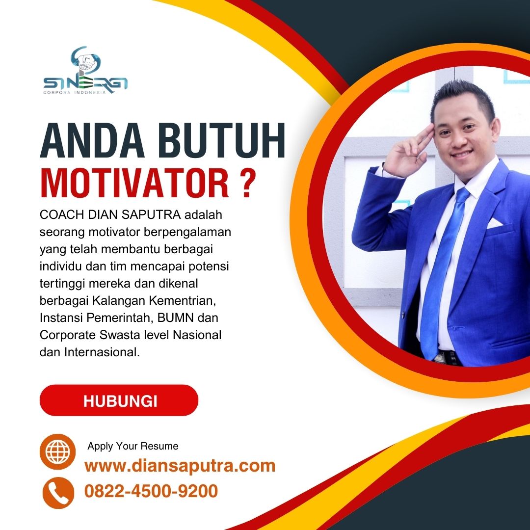 Anda Berada di Info Yang Tepat. Dian Saputra adalah seorang Motivator sekaligus Trainer sinergi corpora Indonesia yang sudah berpengalaman selama 13 Tahun. Coach Dian Saputra selalu memberikan materi yang fun dan Berdampak guna meningkatkan kinerja dan produktivitas SDM di Bisnis Anda. Coach Dian Saputra dikenal oleh Kalangan Corporate Seperti BUMN, Dinas Pemerintah, Kementerian, Hingga Corporate Swasta Lainnya berskala Nasional dan Internasional.