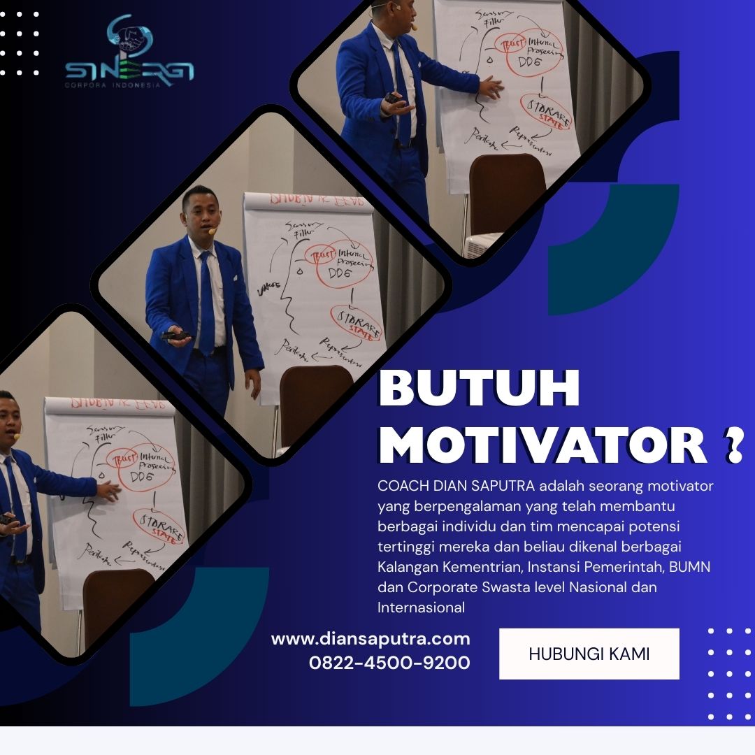 Anda Berada di Info Yang Tepat. Dian Saputra adalah seorang Motivator sekaligus Trainer sinergi corpora Indonesia yang sudah berpengalaman selama 13 Tahun. Coach Dian Saputra selalu memberikan materi yang fun dan Berdampak guna meningkatkan kinerja dan produktivitas SDM di Bisnis Anda. Coach Dian Saputra dikenal oleh Kalangan Corporate Seperti BUMN, Dinas Pemerintah, Kementerian, Hingga Corporate Swasta Lainnya berskala Nasional dan Internasional.