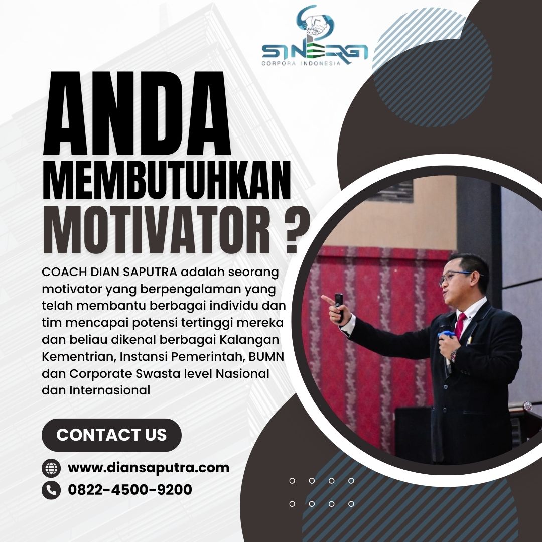 Anda Berada di Info Yang Tepat. Dian Saputra adalah seorang Motivator sekaligus Trainer sinergi corpora Indonesia yang sudah berpengalaman selama 13 Tahun. Coach Dian Saputra selalu memberikan materi yang fun dan Berdampak guna meningkatkan kinerja dan produktivitas SDM di Bisnis Anda. Coach Dian Saputra dikenal oleh Kalangan Corporate Seperti BUMN, Dinas Pemerintah, Kementerian, Hingga Corporate Swasta Lainnya berskala Nasional dan Internasional.