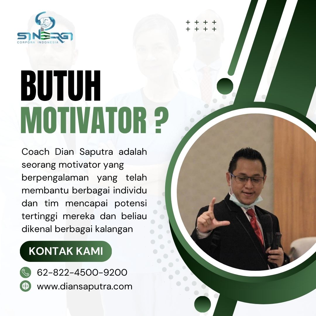 Anda Berada di Info Yang Tepat. Dian Saputra adalah seorang Motivator sekaligus Trainer sinergi corpora Indonesia yang sudah berpengalaman selama 13 Tahun. Coach Dian Saputra selalu memberikan materi yang fun dan Berdampak guna meningkatkan kinerja dan produktivitas SDM di Bisnis Anda. Coach Dian Saputra dikenal oleh Kalangan Corporate Seperti BUMN, Dinas Pemerintah, Kementerian, Hingga Corporate Swasta Lainnya berskala Nasional dan Internasional.