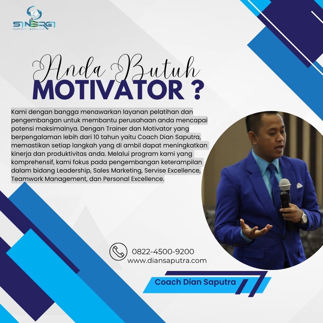 Anda Berada di Info Yang Tepat. Dian Saputra adalah seorang Motivator sekaligus Trainer sinergi corpora Indonesia yang sudah berpengalaman selama 13 Tahun. Coach Dian Saputra selalu memberikan materi yang fun dan Berdampak guna meningkatkan kinerja dan produktivitas SDM di Bisnis Anda. Coach Dian Saputra dikenal oleh Kalangan Corporate Seperti BUMN, Dinas Pemerintah, Kementerian, Hingga Corporate Swasta Lainnya berskala Nasional dan Internasional.